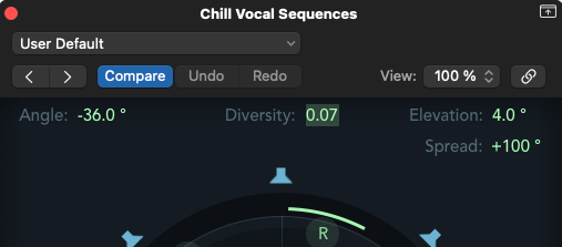 Let’s select an object instrument, and open the Object Panner. From here, highlight the parameter you want to control, in this case, we want to control “Diversity”.