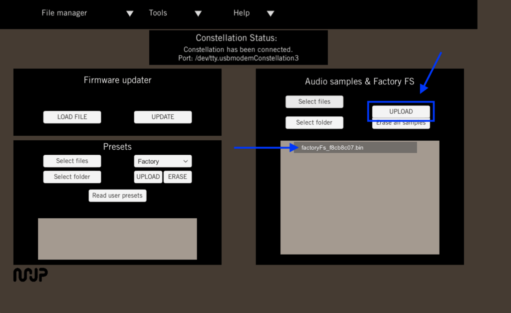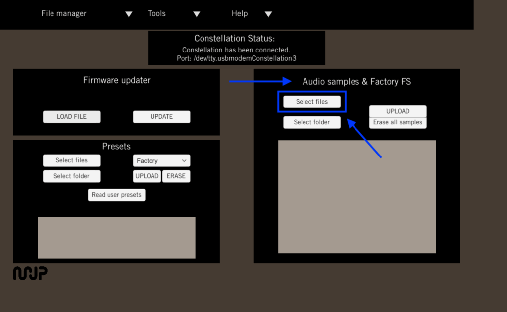 In the Audio samples & Factory FS section click on Select files.