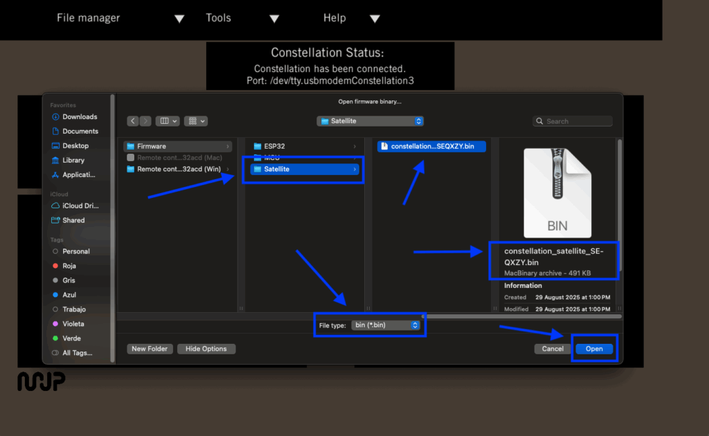 Select the binary file constellation_satellite_<xx>.bin.