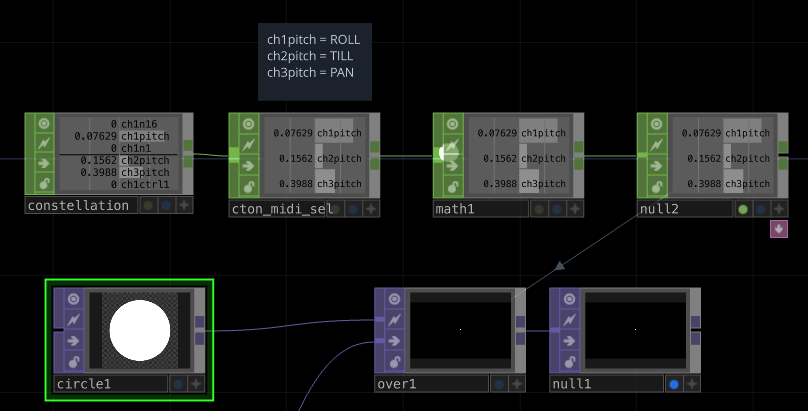 In TouchDesigner, you can use motion data captured by the Satellite devices to control parameters via the MIDI In CHOP operator in your TouchDesigner network.
