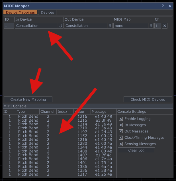 - Set your Constellation MIDI device as both the input and output device.
