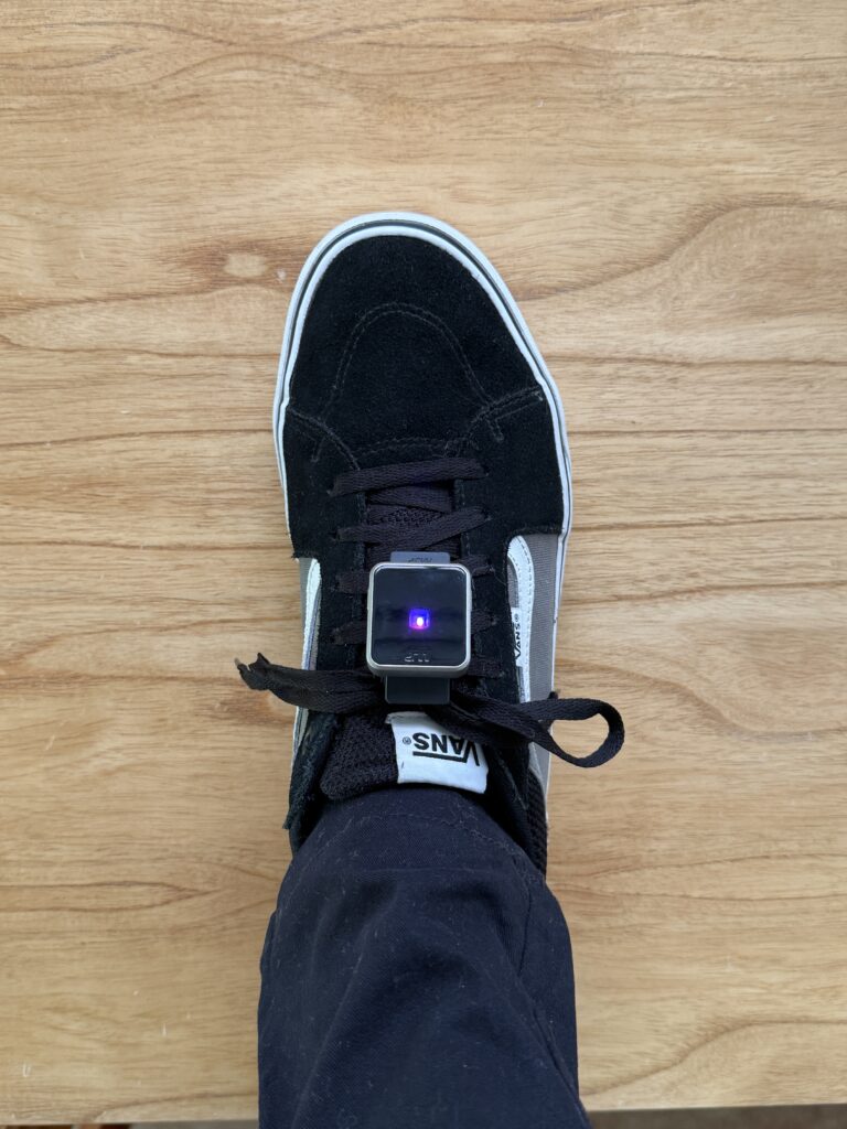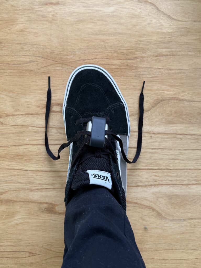 - Position the Satellite (now attached to the clamp) on the tongue of the shoe, and secure the laces.